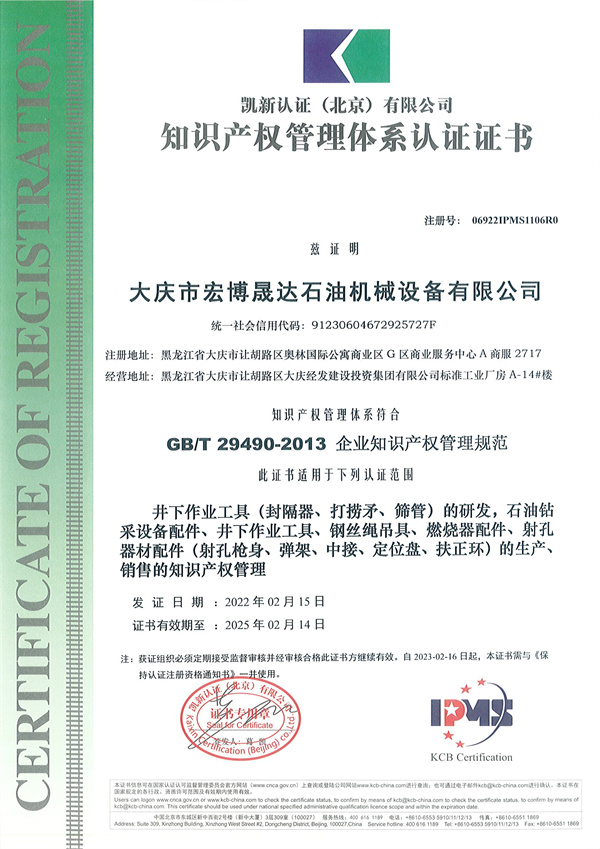 知识产权管理体系认证证书