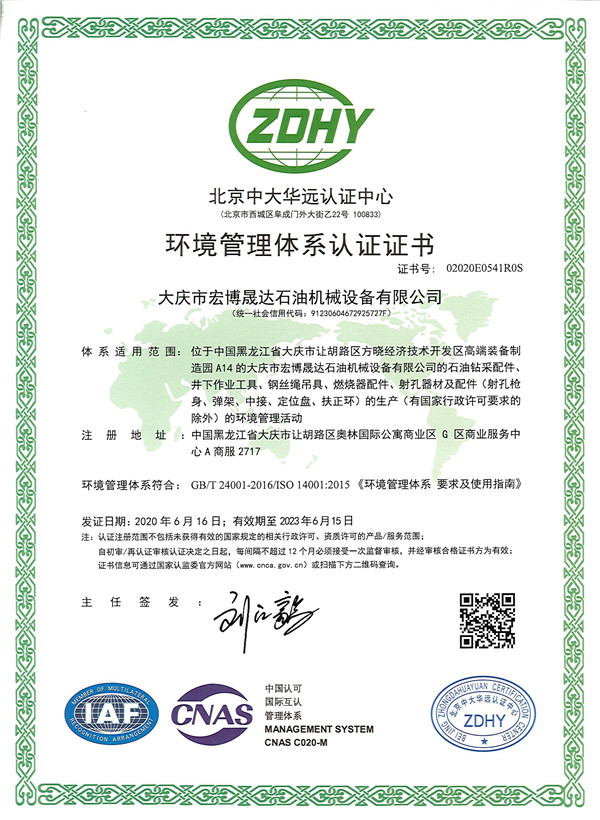Certification certificate of occupational health and safety management system