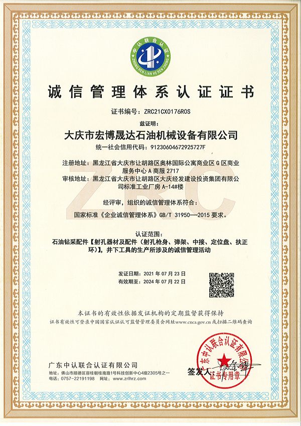 诚信管理体系认证证书